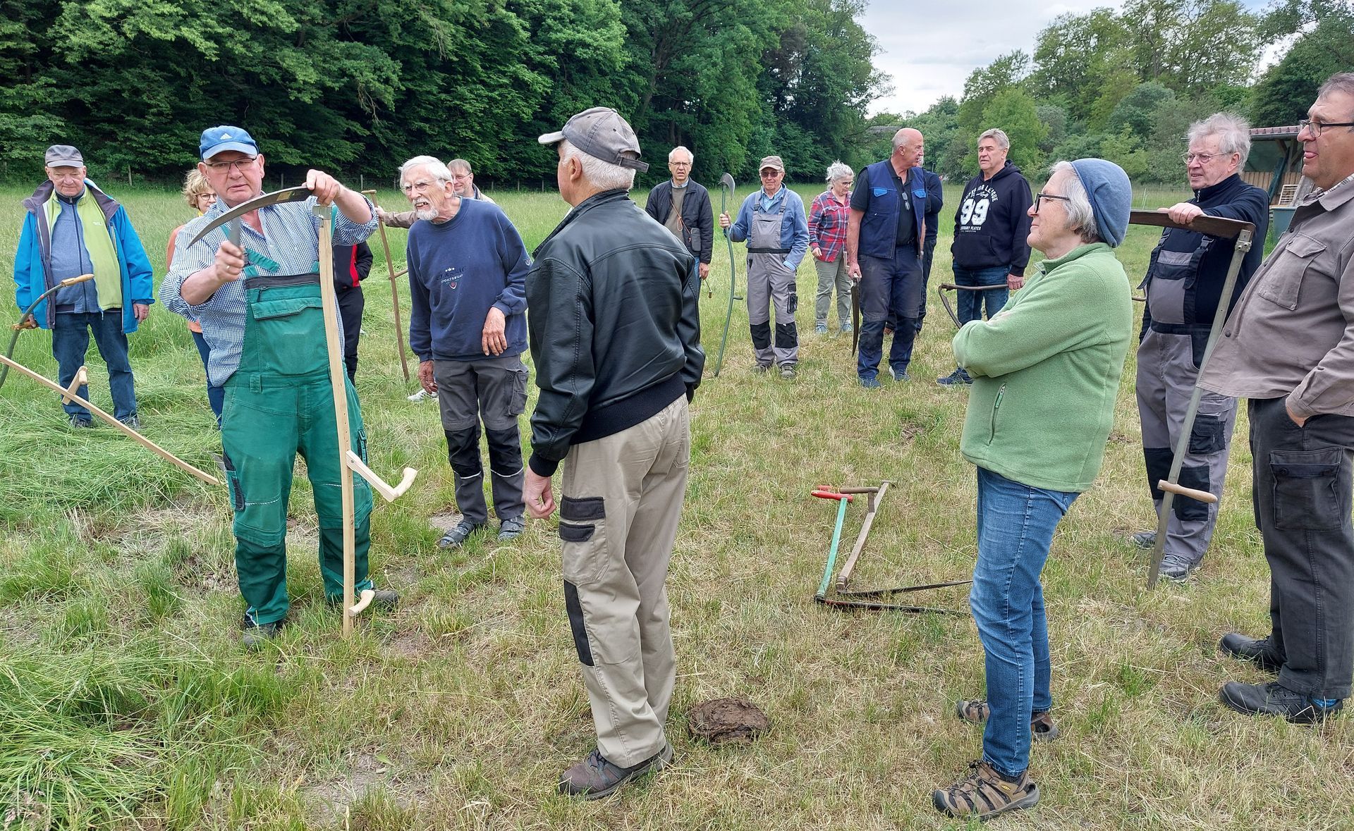 15 Teilnehmer erschienen zu diesem nicht alltäglichen Lehrgang. Diese brachten auch einen ganzen Zoo an Sensen unterschiedlichster Art und Alters mit.